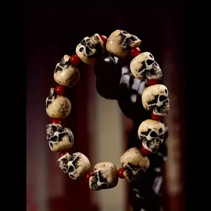 Dark Vintage Style Horror Skull Black Beads Charm Bracelet