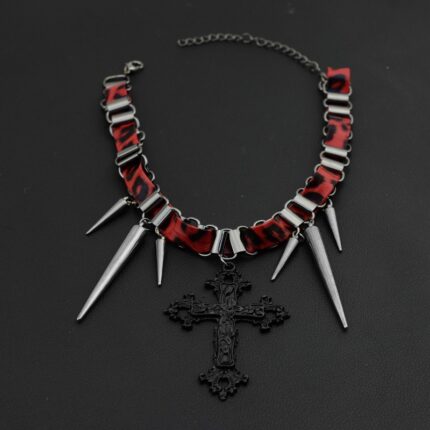 Dark cross bead collarbone chain rivet hip-hop accessory