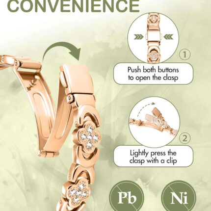 Crystal Stainless Steel Magnetic Bracelets for Women, Four Leaf Clover Bracelet