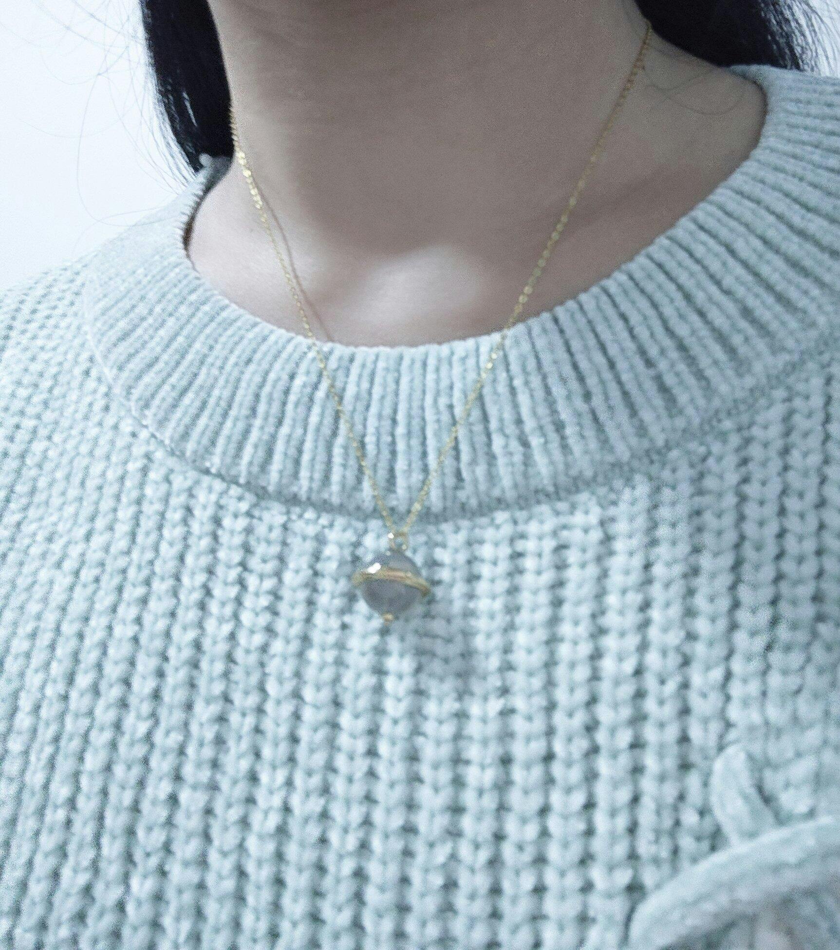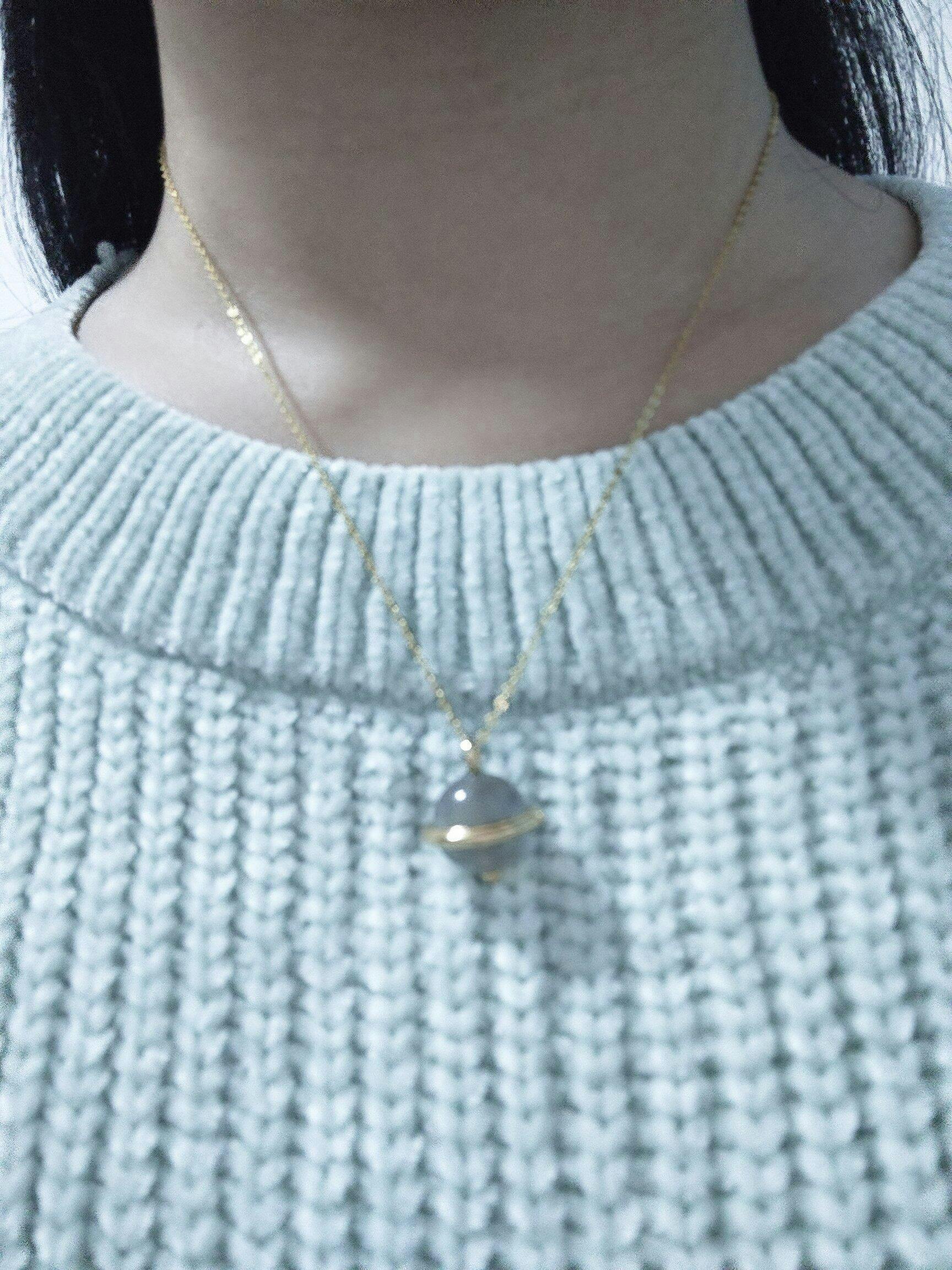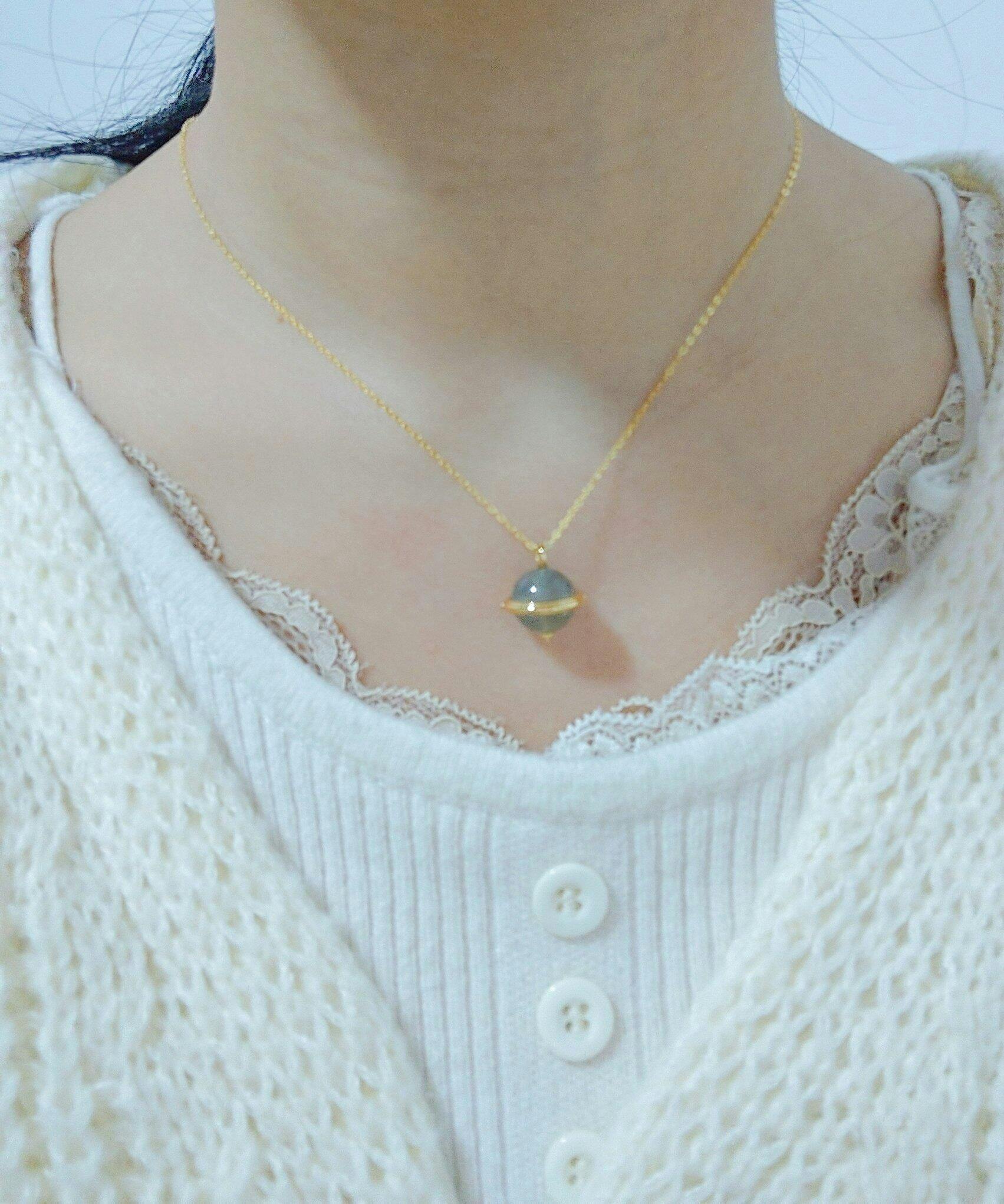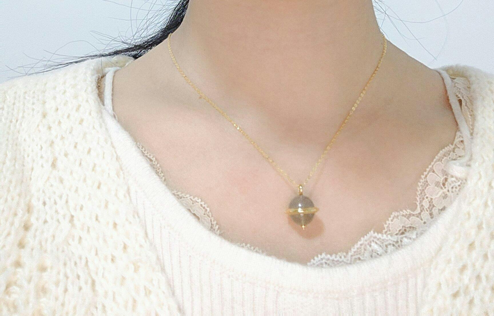 这款项链的设计灵感源自天体行星,将宇宙的神秘感融入设计之中。灰色宝石象征着行星,金色圆环勾勒出行星的运行轨迹。将浩瀚宇宙的浪漫凝结于颈间,开启一场个性化的星际之旅。