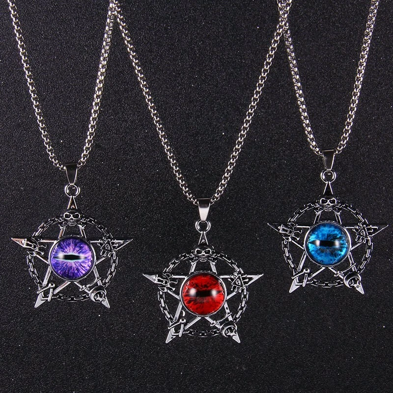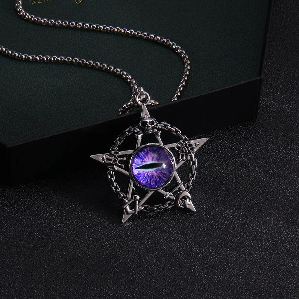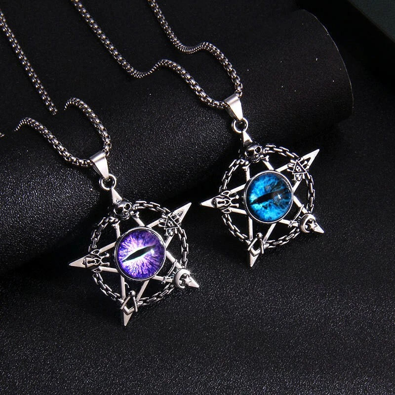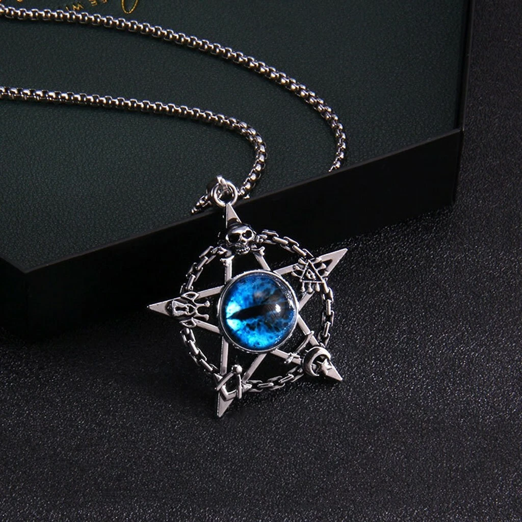 MEN Stainless Steel Star Disc Skull Demon Evil Eye Pendant Chain Necklace