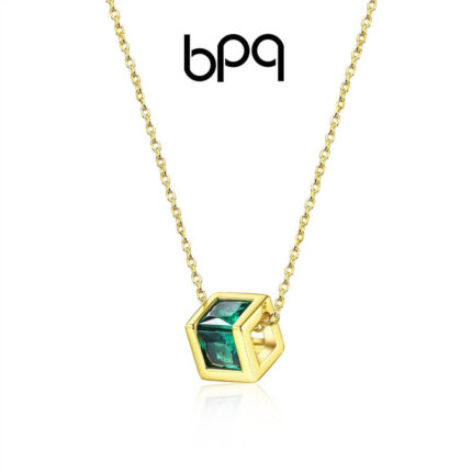 Geometric Green Gem Cube Necklace: Modern Gold – Toned Charm