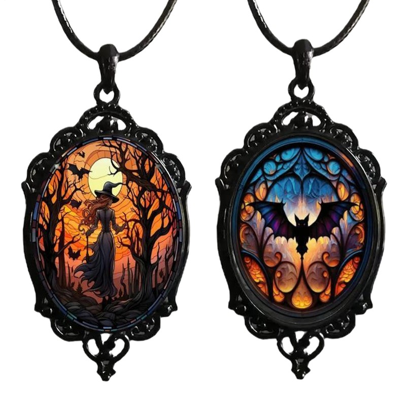 Vintage Gothic Halloween Pendant Bat Witch Pendant Necklace Party Jewelry Gift