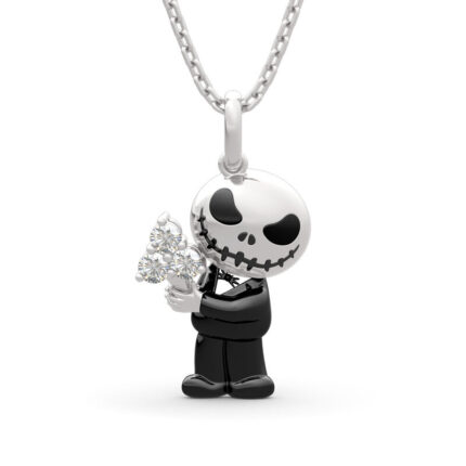 “Love from Pumpkin King” Skull Design Round Cut Sterling Silver Necklace