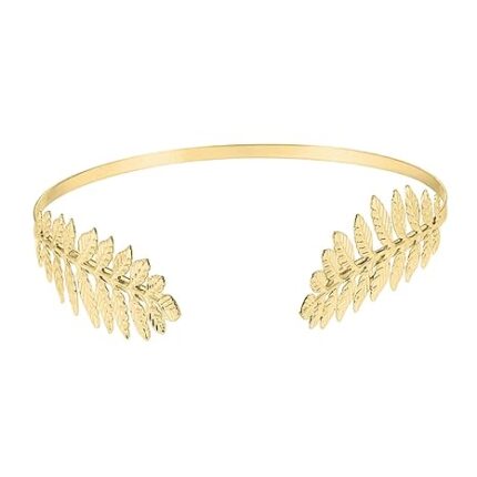 Back-Worn Leaf Metal Headband – Gold Leaf Bridal Wedding Headpiece, Goddess Headpiece for Back-of-Head Wear – Perfect for Weddings, Proms, Festivals, Bridal Showers & Cosplay (Gold-B, M)